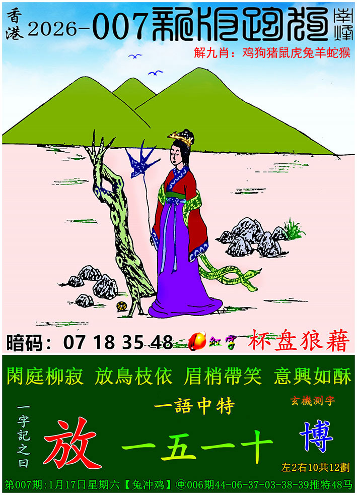 香港六合彩第007期将于2026年01月17日(星期六)开奖