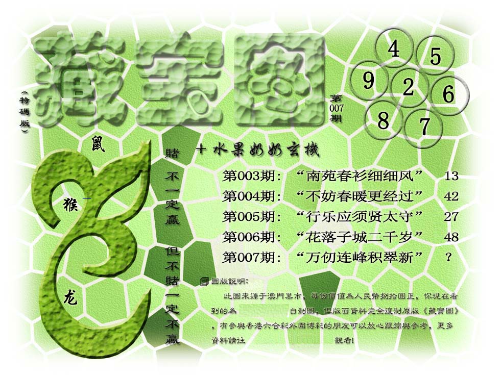 007期藏宝图:【更新中】 浅解:更新中 综合解肖:更新中 综合三肖:更新中 综合解码:更新中 |